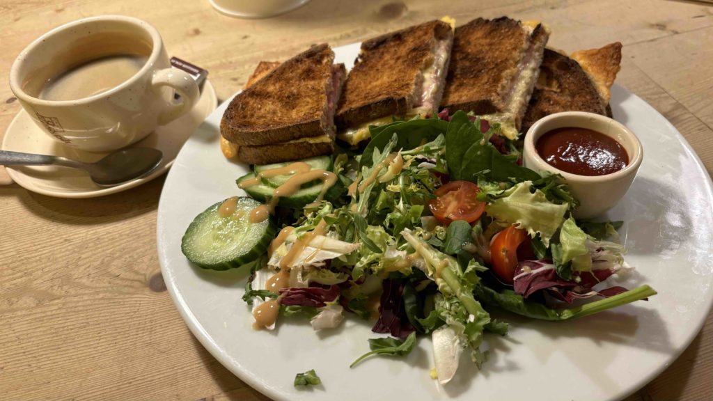 8時オープンだったので、8時過ぎにお店に行くとすでに結構お客さんがいてびっくり。メニューが豊富なので悩みつつ、サンドウィッチとサラダのプレート+コーヒーにしました!Breakfastプレートなど美味しそうなメニューがたくさんありましたし、パンとコーヒーだけも可能でした。