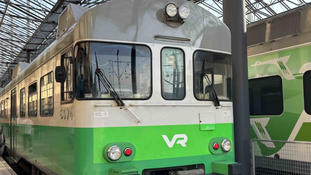 中央駅に着いた瞬間、JRだ!ってなりました。同じ色でVRと書いてあり、東京の山手線の列車が止まっているような感じでした笑